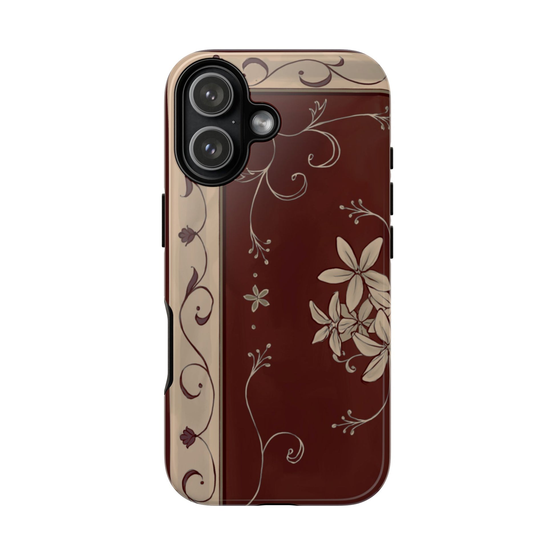 The Sajjada cases feature the pattern of a traditional rug commonly found in households across the Levant. The detail that goes into these rugs can be described as works of art taking on various shapes, forms, and patterns. The Sajjada cases focus on just the corner of the rug where detailed designs can be found such as flowers and intricate borders. This case serves as a reminder of the comfort of home and tradition for the Levantine people.