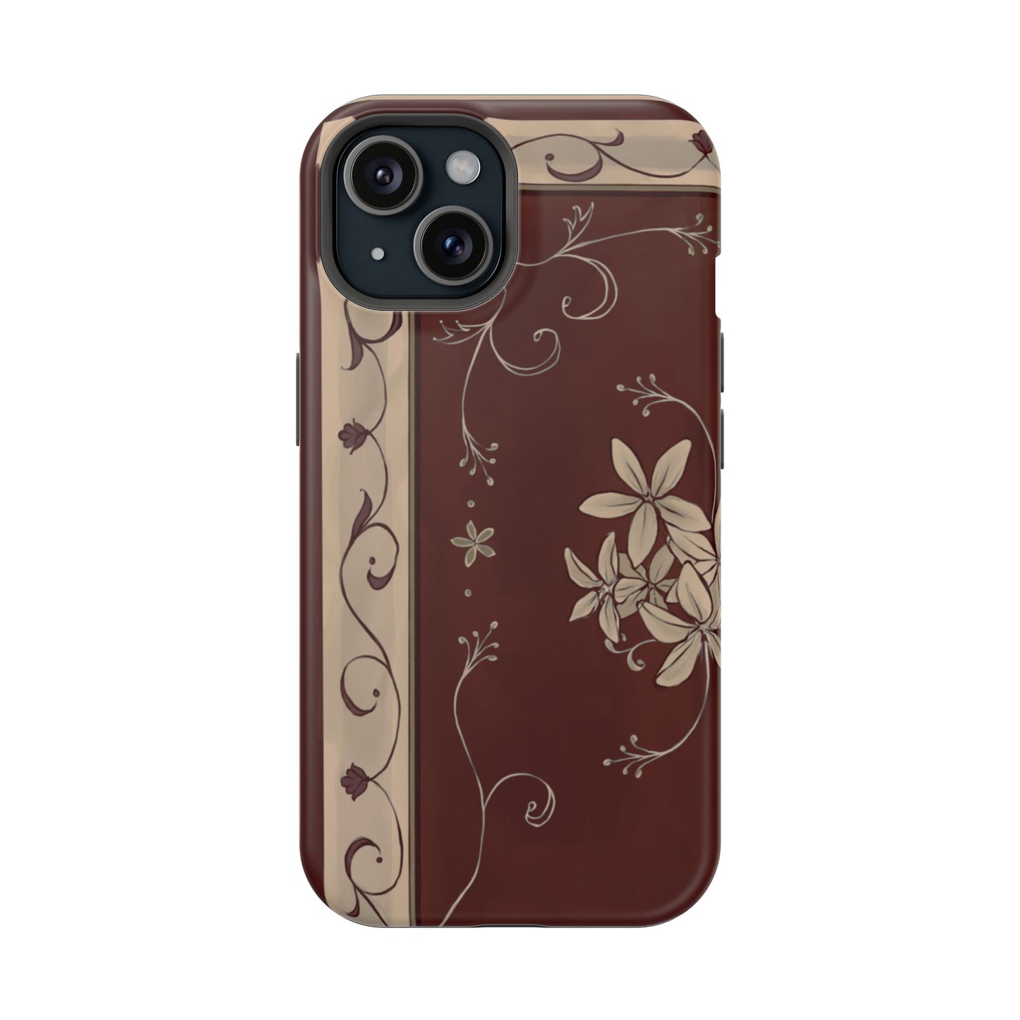 The Sajjada cases feature the pattern of a traditional rug commonly found in households across the Levant. The detail that goes into these rugs can be described as works of art taking on various shapes, forms, and patterns. The Sajjada cases focus on just the corner of the rug where detailed designs can be found such as flowers and intricate borders. This case serves as a reminder of the comfort of home and tradition for the Levantine people.
